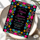 Denna vibrant Blommigt, mexikanska fiestasbröllop, sprider sig med färg och firande och fångar den glatta andan hos en livlig fest. Med fet, handmålad blommigt i rikens fuchsiska nyanser, marigold, turkos och rött utstrålar den värme-, energi- och kulturcharm. Intricate blommigt accents and festive typography skapar en lekfull men elegant vibe, perfekt för par som planerar en bröllop-fullt av färg, musik och kärlek. Perfekt för sommaren firande, för destinationsbröllop, eller för alla som vill att deras stora dag ska börja med ett pulserande flage och festlig skönhet.