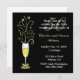 Elegant anpassad bröllopsjubileumsfestinbjudan, utförd i svart och guld. Grafik av ett firande glas champagne dekorerat med ett guldtonat band på skaftet och gnistor som kommer ut ur toppen, sitter på vänster sida av inbjudan. En solid svart bakgrund med vit och guldtonad text är helt anpassningsbar för att passa dina festbehov. Bra för födelsedagsfester också.