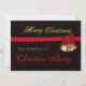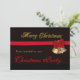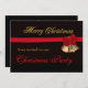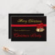 Företag eller familj julfest inbjudan med "God Jul" i guld med gröna höjdpunkter på en svart bakgrund. Ett rött band med gyllene klockor och en röd rosett löper över designen. Baksidan av inbjudan är svart och har utrymme för din festinformation i röd och guld text. All text kan anpassas. Mycket elegant juldesign för alla dina julfirande inbjudningar.