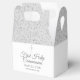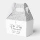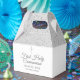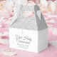 Elegant 1-heligans gemensamma förmånslåda med silver-startstoft med händelseinformation i chic silver-typografi. Du kan anpassa dig med ditt eget tack till ditt meddelande på motsatt sida. Ett perfekt sätt att tacka gästerna! Designad av Thisisnotme©