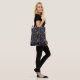 Denna tote-handväska har ett vackert, mörkt magiskt mönster med fjärilar, malar, månar, blommor och stjärnor i djupblått, lila och guld.