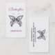 Visitkort med en elegant fjärilslogotyp. Detta kort är klart för customisation med din information om affären. All text kan ändras - ändra stilen, färgar, storleksanpassar, tillfogar eller tar bort textfält för att passa dina behov. Om du behöver någon hjälp, behaga e-posten Kirsty på kirsty_pargeter@yahoo.co.uk