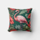 Elegant Flamingo Hibiscus Flowers Emerald Grönt Kudde