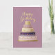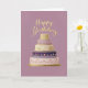 Elegant flerskiktig födelselsdagstårta i lila och kort