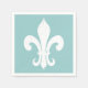 Elegant fleur de lis papper napkins for bröllop. Turcoise blue eller anpassningsbar bakgrund färg. Vintagens utseende. Ändra kvantitet för att få den billigaste prisa. Anpassningsbar med namn initialer av brud och groom.