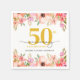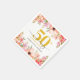 This 50th wedding anniversary paper napkin showcases a graceful watercolor floral border along the top and bottom. Soft shades of pink and peach create a delicate charm—perfect for golden milestone celebration.