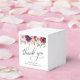 Elegant and chic personalized thank you favor boxes for her 75th birthday party that feature "thank you" in a chic calligraphy script and watercolor bouquets of burgundy red and blush pink florals with sage greenery. Personalize with her name.