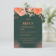 A sophisticated and elegant design featuring a deep green background enhanced by soft peach and coral floral elements. The refined typography and clean layout create a balanced and modern aesthetic, while the botanical accents add a romantic and timeless touch. Ideal for collecting guest confirmations in a stylish, nature-inspired format.