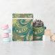Elegant Floral Pattern in Yellow and Red on Green Presentpapper