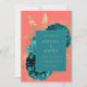 Elegant Floral Teal Blue Coral Gold Wedding Inbjudningar