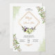A beautifully designed wedding invitation featuring delicate white and yellow flowers with green leaves. The card displays the names of the couple in elegant cursive font, with event details including date, day, and time in a clean, modern layout. Perfect for a sophisticated and nature-inspired wedding celebration.