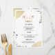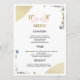 A stylish wedding menu card with delicate floral elements and a refined design.