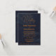 Den här inbjudan har en sofistikerad blandning av marinblått och guld, som förmedlar en känsla av lyx och tidlös elegans för ett evenemang i bröllop.