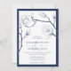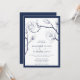 Modern och elegant marin och vit bröllopsinbjudan. Konstruktion med djup bakgrund i flottan, blommigt inslag i nyblå nyans och bröllop i vitt ram. Lägg till din händelseinformation med hjälp av den mall som fälten tillhandahåller och klicka sedan på "anpassa" för att redigera mallen.