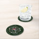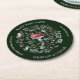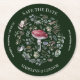 Elegant Blomschare Bröllop spara datum Round Papper Underlägg Ett modernt datum för att spara det i ett unikt underlägg format designat på djupa gröntar och med ett svamprum omgivet av blommor och löv "Spara datum..." visas överst på din underlägg i vitt blockering, med namn på grund och på bröllop-datum och bröllop på lämnat sida. På högerna finns ett utrymme för bröllop webbplats eller annan information. Ändra färg i bakgrunden och teckensnittet enligt dina önskemål.