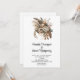 En bröllopsinbjudan med en söt bukett av persikofärgade blommigtar, omgiven av brunaktiga brons- och bladbete med ludderaccenter.