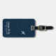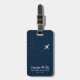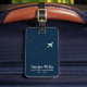 En enkel, modern och elegant utformning med ett stiliserat flygplan med prickad bakgrund på mörk blått bakgrund, personlig med resenären namn och anpassningsbar ord "new RESE äventyr". Ett bagagemärke med namn är viktigt av flera praktiska skäl vid resor. För det första är det ett snabbt och enkelt sätt att identifiera ditt bagage i havet från liknande påsar på flygplatser, i buss station eller på andra knutpunkter i transport. Detta kan spara dig att ta tid och minska risken för att av misstag ta någon annans väska eller få någon annan att ta din. För det andra ger en bagagetapp med ditt namn en viktig kontaktinformationslänk i fodral som din väska får borttappad. Om ditt bagage olyckligtvis blir missplacerat under resan, gör det mycket enklare för flygbolags eller transport personal att återförena dig med dina tillhörigheter om du har ditt namn och kontaktuppgifter på märkrn. Denna enkla åtgärd ökar chanserna till en snabb och korrekt hämtningsplan processaa.