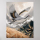 Elegant Flying Crane Over Golden Wheat Landscape Poster
