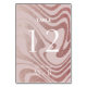 En elegant flytande rosa guld bakgrund bröllopsbord nummer 3,5x5 tum skylt med en fantastisk guld bakgrund med feta tabellnummer och parets monogram.