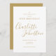 Elegant valfri ålder guld namnteckning spara datuminbjudan med ett elegant guldskript namnteckning namn. Anpassa med din speciella firande-händelseinformation i chic guld-bokstäver. Designad av Thisisnotme©