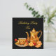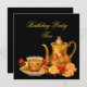 Svart Röd Guld Rosor Tea Tekanna Tekopp Blommig Elegant Födelsedagsfest inbjudan. RSVP tillgänglig. Anpassa med dina egna detaljer. 40:e, 50:e, 60:e 21:a, 30:e.