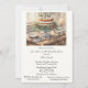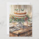 Denna födelsedagsinbjudan är utformad för en tehuslokal. Designen har en vacker lagkaka med julgröna och vintage-tekan och tekoppar Denna inbjudan är perfekt för fester där gästerna klär sig i en svunnen era och bär vintageklänningar, handskar och fina hattar. "AI-genererad konst med designriktning av Susang6"