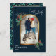 Den här eleganten har ett guld-bågfoto ram, omgivet av vintern löv och bär och meddelandet "Säsongens hälsningar". Gör det helt unikt med din familj namn och fotografi. Lägg till ett personligt meddelande på baksidan eller lämnan tomt genom att ta bort text i avsnittet Anpassa detta