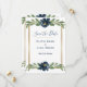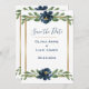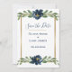 Elegant för blå och vit Blommigt, Guld Bröllop Spara Datumet