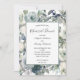 En vacker blått, grönt och vit blommigt-repetitionsinbjudan. Formell och elegant. Tre fält text som du kan redigera med dina uppgifter.