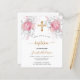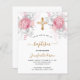 För en elegant baptism, firande av flicka. En vit chic bakgrund. Dekorerad med rosa och vita blommigtar, ro och ett faux guld kor. Anpassa och lägg till namn om barnet och detaljer. Svarta och gyllene brev.