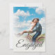 Ett enkelt foto med ett modernt elegant-skript som tillkännager din Förlovning överst. Fotot har lätt ändrats till ett eget foto. Fotot på motsatt sida visas som i exemplet. Texten på baksidan ändras lätt för dig själv.