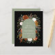 Budgeterad julkortsdesign för Rustic vattenfärgsfärgad blommigt. Med vacker rost, teracotta, svart och sage grönt pampas gräs eucalyptus botaniska vattenfärgsdetaljer. Den här moderna helgdag är säker på att du kan ställa in stil för din julhelg