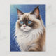 En verklighetstrogen målning av en majestät Ragdoll-katt med levande blå ögon. Perfekt för elegant av väggkonst, gåvor och tillbehör till kattentusiaster.