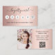 Bakgrund för metalliskt tittar ro-faux, svart text på framsidan: Lägg till rabatt. Tillbaka: Anpassa och lägg till foton, namn, titel, mobilt nummer, e-post, webbplatsadress, qr-kod på webbplatsen.