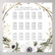 Hand målade vita anemonblommor paras med jorda löv av neutralt och löv tillsammans med fitta kommer grenar. Bord-sätesdiagram som omfattar sittplatser för upp till 150 och 15 bord. Du kan ta bort ett bord eller ändra antalet gäster på bord med hjälp av anpassningsfunktionen. Konst upphovsrätt, Audrey Jeanne Roberts.