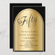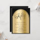 En elegant på 50-årsinbjudan. En svart bakgrund med en gyllene båge på framsidan.