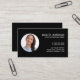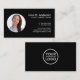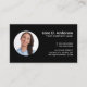 Ett svart, modernt, elegant- och professionell affärskort med ditt namn, företagets namn/titel och kontaktinformation på framsidan tillsammans med ett fyrkantigt foto. Lägg till en egen logotyp på baksidan eller ta bort logotypen. Ändra bakgrundsbilden i färg, flytta och ändra storlek på logotypen med anpassningsverktyget i verktyg. Lämpligt för företagspersonal inom alla branscher.