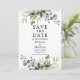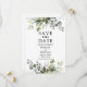 Modern Elegant Watercolor Botanical Grey Save Datakortet omfattar eukalyptus löv, grönt botaniskt löv, dammiga blå löv och andra vackra botaniska grejer.