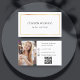 En chic vit bakgrund och en faux guld ram. Anpassa och lägg till namn och text framtill. Tillbaka: Mallar för profilfotot, namn, rubrik, mobilt nummer, e-post och webbplats adress, QR-kod till webbplatsen eller social-mediekontot.