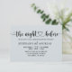 Den här elegantens inbjudan kommer att ange tonen för din moderna och sofistikerade repetitionsmiddag i firande. Med en elegant svart kalligrafi med texten "natten före" bredvid en charmig hjärtedetalj på en dammig blå bakgrund, strejkor denna design perfekten mellan enkelhet och romantik. Anpassa den enkelt med dina egna detaljer så att den blir riktigt din egen.