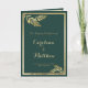 Elegant modern grönt av skogar och inbjudan till guldlöv-Bröllopsprogram. Den här chicen är en perfekt för alla klassofistikerade och sofistikerade glam-flickor. Den här designen är perfekt för en händelse i trendig och snyggt party. Utforma med eget meddelande och egen information. Alla designer skrivs ut.