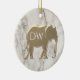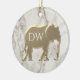 Klassiskt, elegant marmor och förgylld silhuett av elefant julgransprydnad med initialer på framsidan och anpassad text på baksidan.