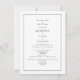 Elegant formell svart-vit bröllopsinbjudan. Båda föräldrarna nämns. Vit bakgrund.