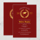 En förfinad och elegant examensfestinbjudan har en djup röd burgunderbakgrund, inkluderar en gyllene lagerkrans och examenshattik ikon och stilfull typografi. Baksidan har en lagerkrans och en examenshattik ikon. Detta kort utstrålar sofistikering och är perfekt för en formell firande. Anpassa med din egen text och festadress och fira din examensfest.