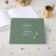 Ett vackert elegant, högtidligt skript, bröllop-design med en oliv grönt bakgrund färg. En unik design som användor ett typsnitt för kalligrafi-bröllopsinbjudan och ett hand plockade greenery löv gren. En formell kalligrafi av skript med oliv grönt toner. En gäst bok-gäst i elegant bröllop med klassiskt inslag. Det finns också möjlighet att matcha bröllopsinbjudningar och andra artiklar i kontorsartiklar.