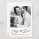 Elegant kalligrafi foto ändra datum bröllopsförsenad kungörelse. Detta svart-vita tillkännagivande är ett enkelt sätt att låta inbjudna gäster veta att datumet för ert bröllop har ändrats och förse dem med det nya datumet.