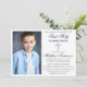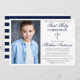 Modern Elegant Blue och Silver First Heliga Communion Call with Kor and Photo. Blå och vit Rand på baksidan.