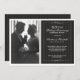 Framhäva det firade paret med ett originalbröllopsfoto eller en bild från idag på detta vackra svartvita fotokort för fester. En elegant text med subtilt smokingrandigt bakgrund bredvid bilden av det speciella paret ger en vacker presentation för familj och gäster. Varje textrad kan anpassas för att passa dina behov och festsplaner perfekt.