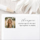 Denna eleganta examensdesign har en mjuk, solbelyst porträttbild i kombination med en ren och minimalistisk adresslayout för en förfinad och polerad look. De varma, naturliga tonerna från fotot smälter vackert samman med den krispiga vita bakgrunden och skapar en balanserad och tidlös estetik. En delikat scriptfont framhäver namnet, medan adressen visas i en enkel, lättläst stil för en modern touch. Kombinationen av personlig bild och klassisk typografi gör att denna design känns både sofistikerad och hjärtlig, perfekt för att fira en examensmilstolpe med subtil elegans.