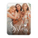 Modern, elegant fotomagnet har ett enda foto inuti vitt ramar, typografiskript "systrar". Perfekt som gåva till systrar.
